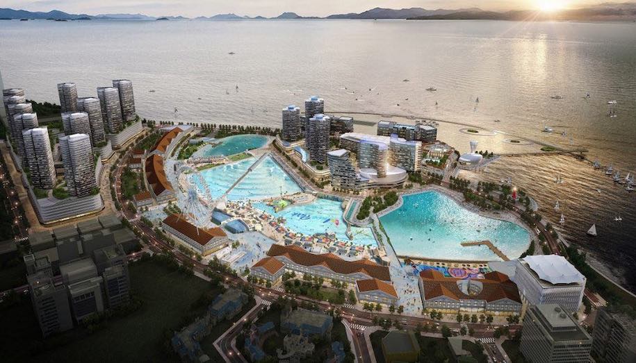 韓国 ソウルから車で1時間のタートルアイランドに建設された「Wave Park」は、世界最大の商業施設型のWAVE POOL。今後、WAVE POOLのほかにSUPや水泳が楽しめる波の無いパークエリアや、ホテル、会議場、マリーナ、博物館が併設されていく予定。