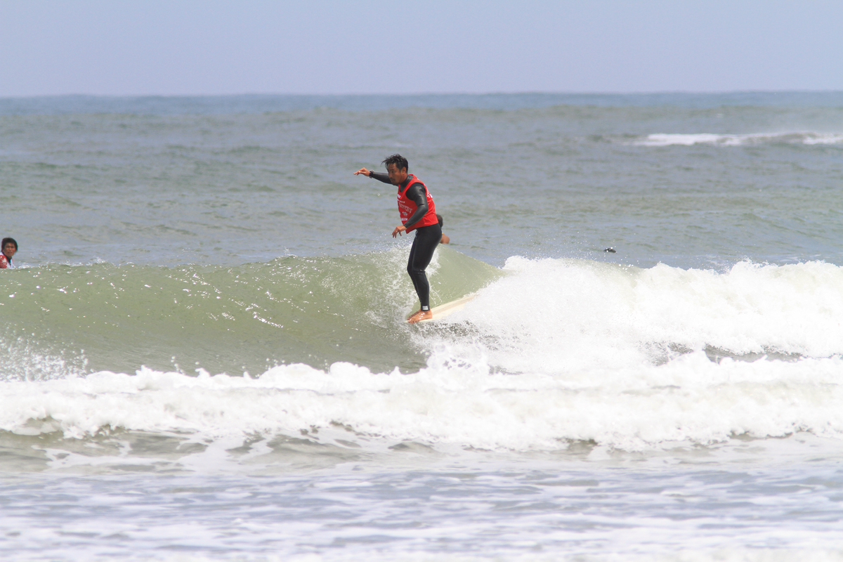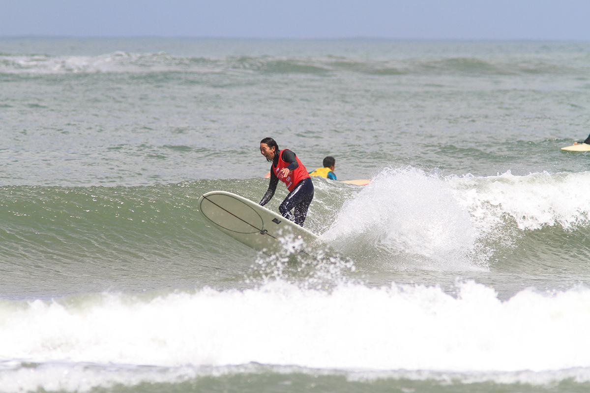 ▲日本を代表するシングルフィンロガーのひとり、中村清太郎プロ。終始安定したノーズライドを繰り出し観客の目を奪った