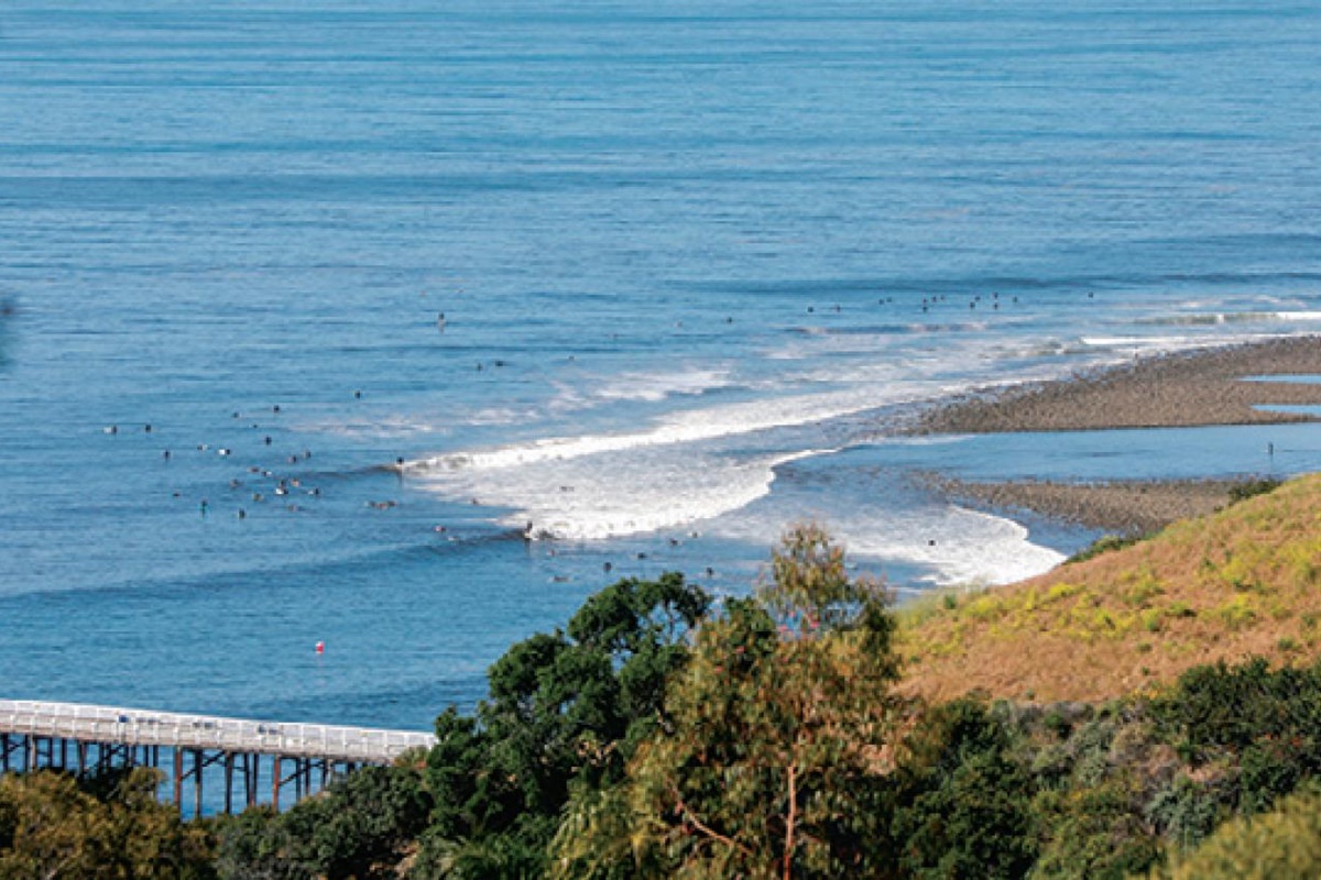前と同じようにスイートウォーター・キャニオン・ロードを登ったところにクルマを止め、渓谷を見下ろし、ピア越しにファーストポイントを眺めると、その景観こそ素晴らしかったものの、蟻のようなサーファーたちが忙しなく動き回ったり、波待ちをしていたり、中にはドロップインしている人もいたりして、前の光景とは違っていたのだった。