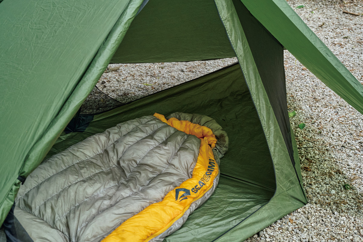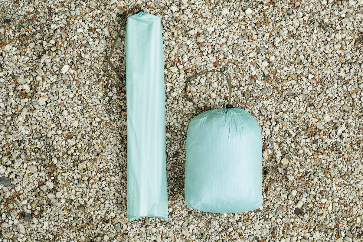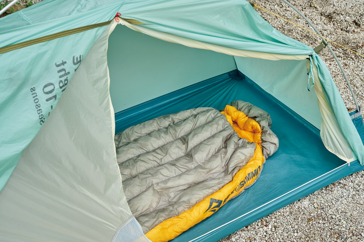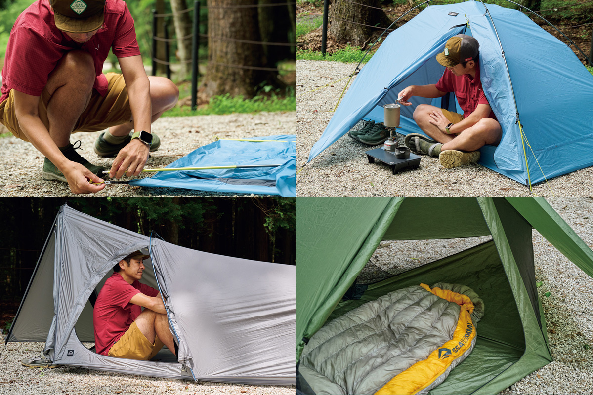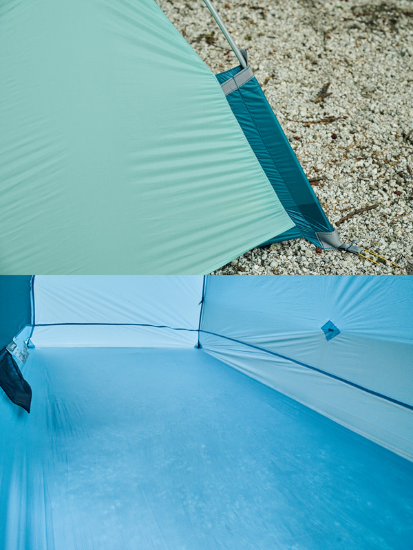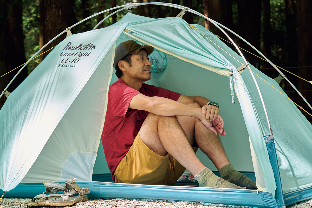 そこでわかったのは、フライがないぶん設営&撤収が素早く行なえ、安全性が高いこと。極薄軽量素材ゆえに山岳テント並の強度はない。だが使用シーンを選び、使い手の経験と技術を用いれば、軽さと快適性という相反する機能を両立させた、つくり手のアイデア、個性を最大限に楽しめるモデルということだ。