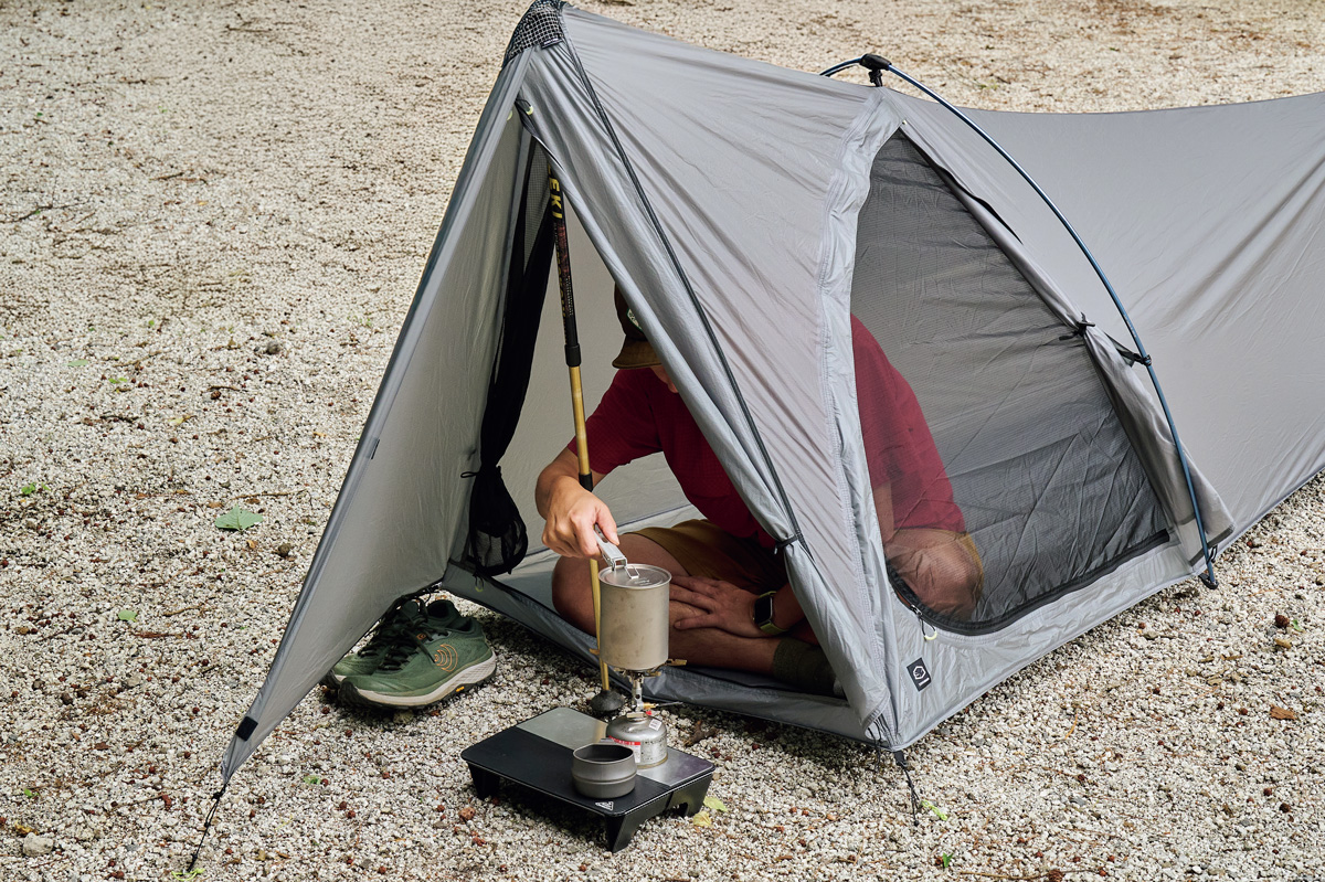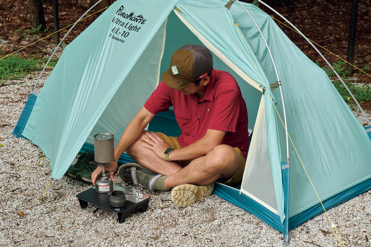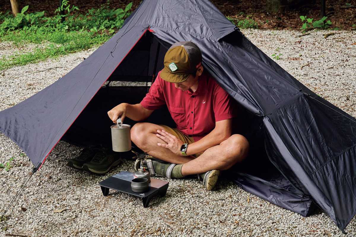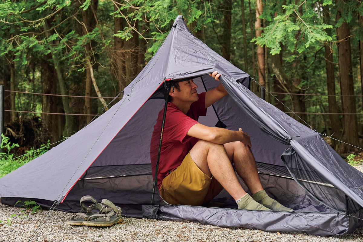ULテント愛用者は多いが、軽さが特長のシングルウォールユーザーは少数派。なぜか? 多くは前室がないため室内が狭く、ときにドロドロになったシューズを室内に持ち込む必要があり、寝ているあいだに結露で寝袋が濡れて……。つまり使い勝手が悪く、快適ではないからだろう。
