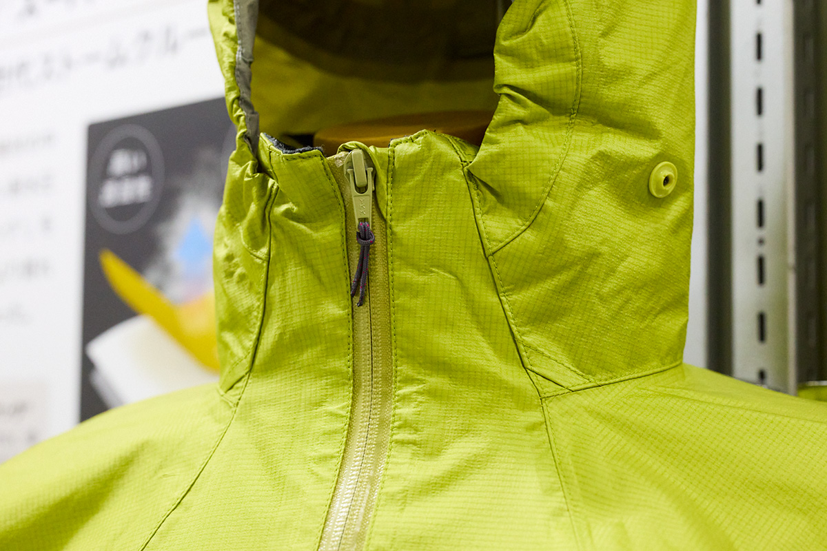 裏地に「Cニットバッカー」を採用することで、着心地のしなやかさがさらに向上。独立した襟を廃してフードと一体構造にし、接着加工を取り入れるなどして、大幅な軽量化を実現。