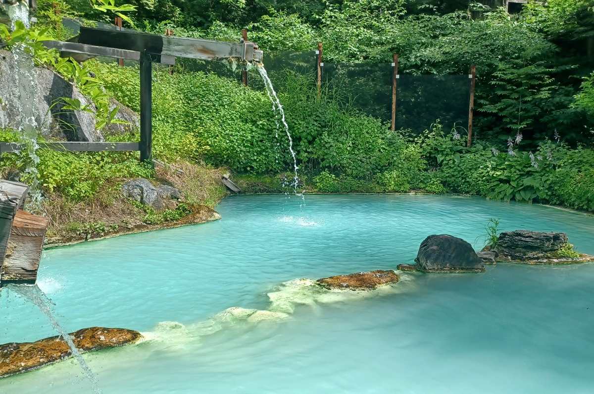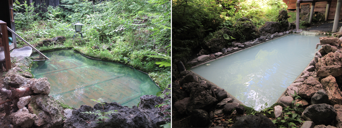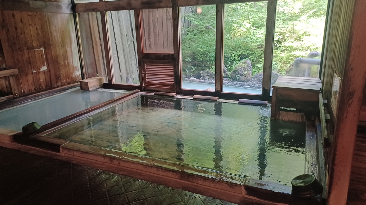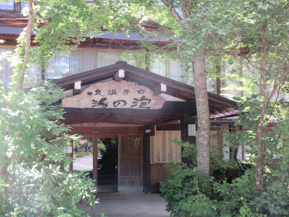 さて、気分一新、下山後の温泉へ。今回訪ねるのは、白骨(しらほね)温泉の「泡の湯」。山深い地に位置する隠れ家的な老舗の温泉旅館だ。日帰り入浴ももちろん可能。惑うように彩を変えてゆく“変幻の湯”は、信州の秘湯として名高い。