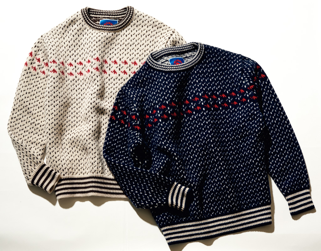 1950年代から’70年代のクライマーを象徴するアルパインセーター。フリース登場前にミドルレイヤーとして定番だったウールセーターを現代に復活。アクセントとして入れられている赤い柄はマンモス。