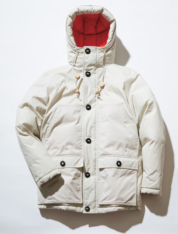 850フィルパワー・グースダウンをふんだんに詰め込んだ、保温性の非常に高いダウンジャケット。フロントはボタン留めで、表地素材は高密度コットン素材「ベンタイル」でナチュラルなイメージに。