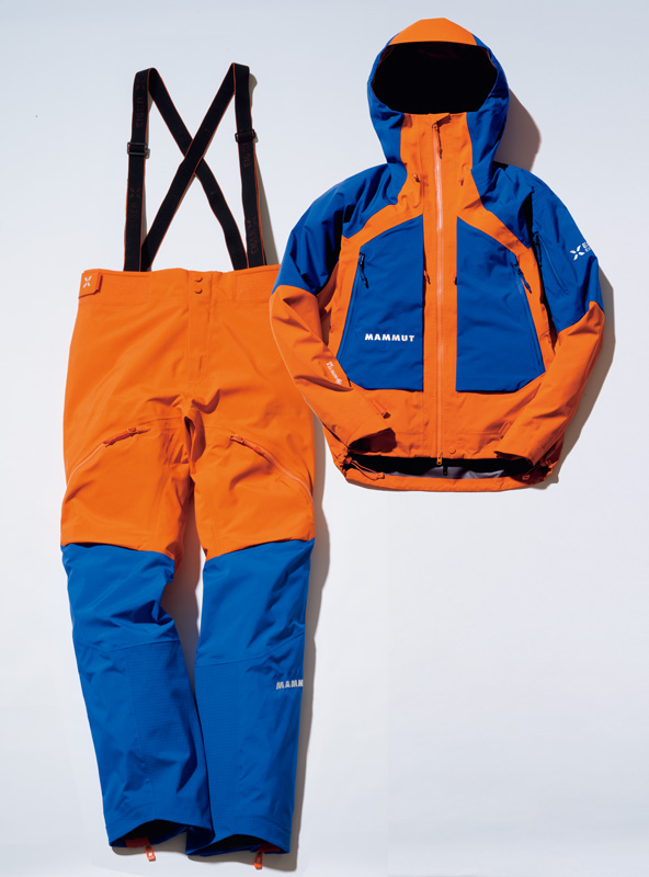 マムートのフラッグシップとなるジャケットとビブパンツ。いずれもePEゴアテックスプロが採用されており、ゴアテックスのなかでも最高レベルの耐久性を誇る。「ノードワンド」とはドイツ語で「北壁」の意味。