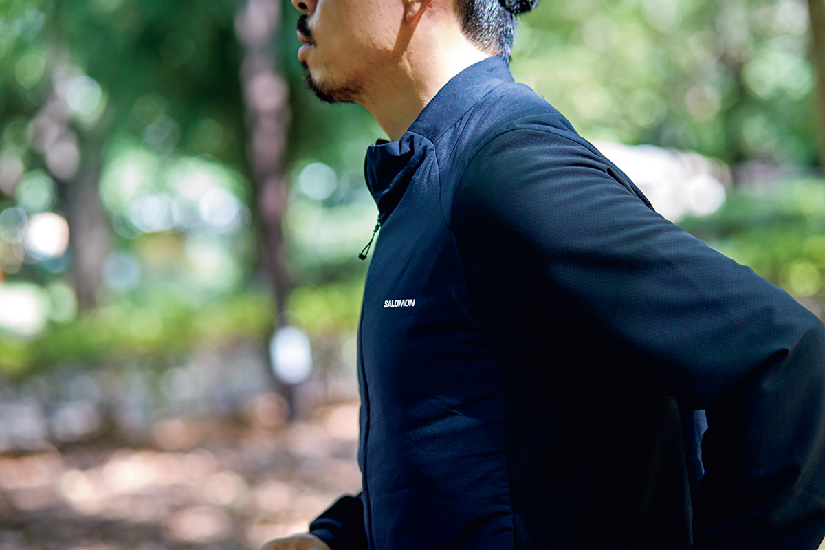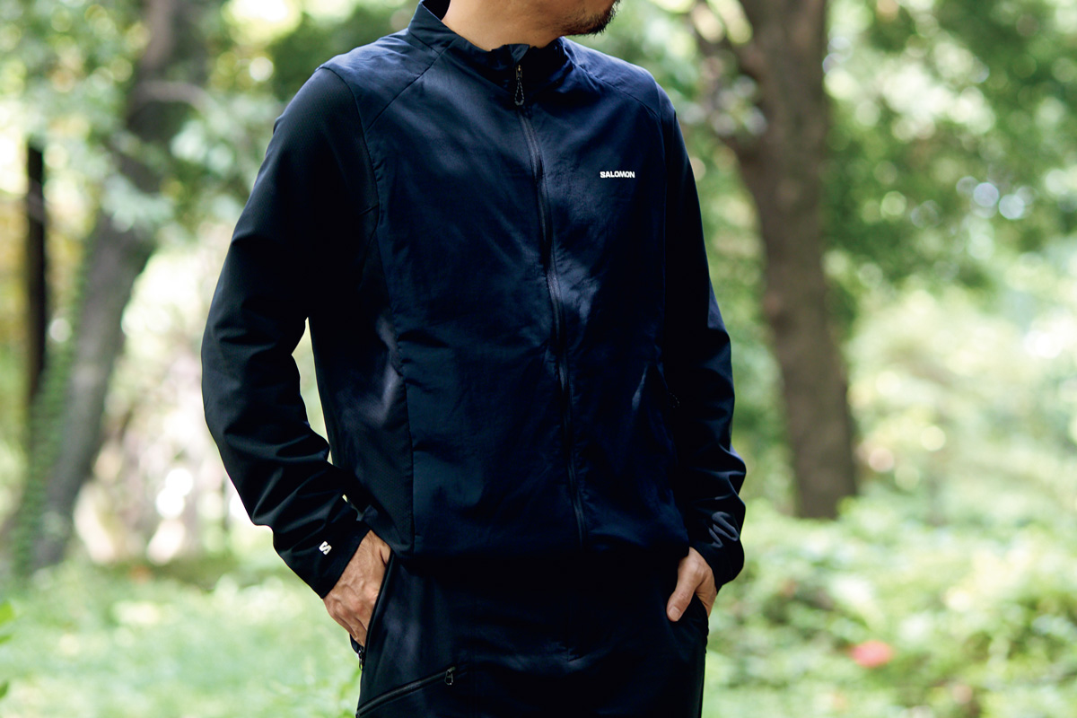今季初登場のハイブリッドジャケットは袖と脇をジャージのようなニット素材で切り返し通気性を向上。さらに伸縮性にも優れており激しい動きにもストレスなく追従してくれる。ランニングを想定してやや細めのシルエットで作られており、そのおかげでしっかりと身体にフィットしてくれる。