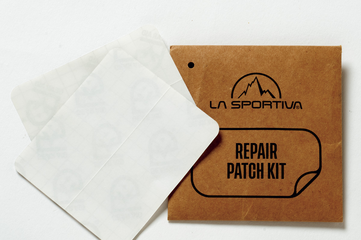 表地の穴や裂け目を手軽にふさいで、ダウンの飛び出しを防ぐパッチキットは、緊急時にも保温力を確保できる強い味方。