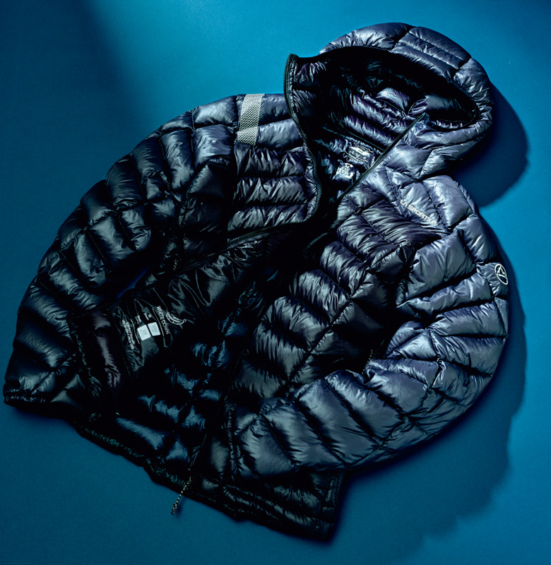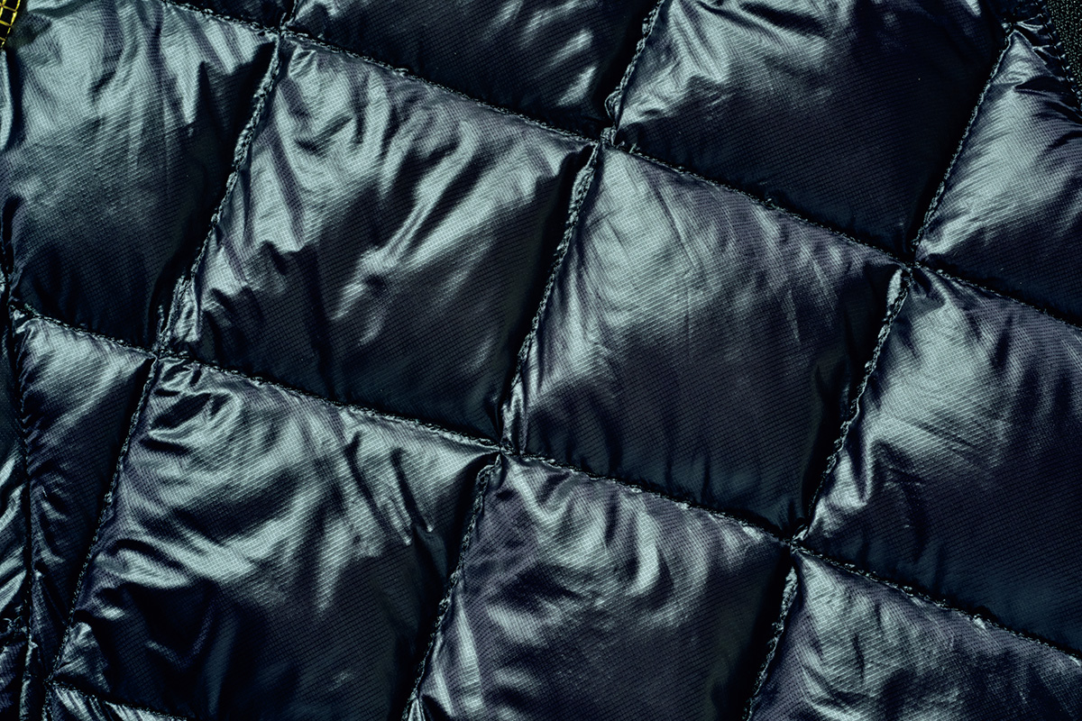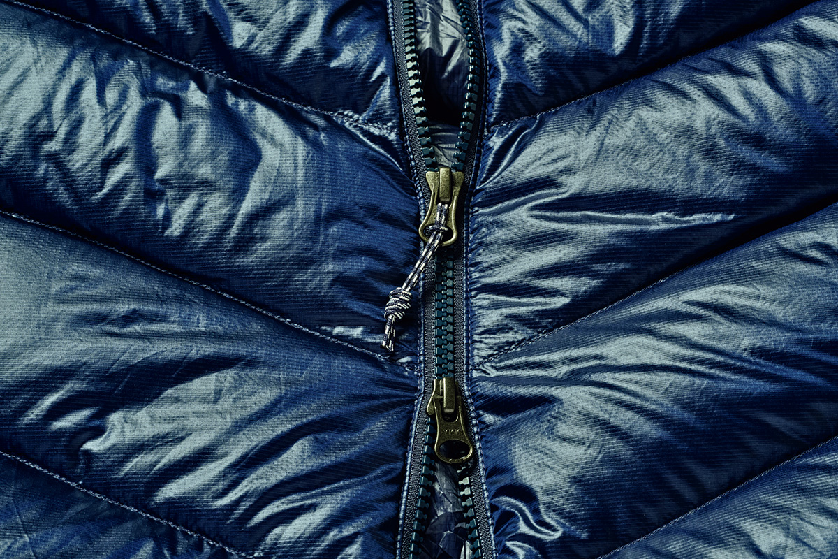 着目すべきは、ダウンが製品重量の約50%を占めるということ。市場の製品のほとんどがダウン重量比30〜40%を示すなか、耐久性を損なわず生地や副資材を軽量化し、可能な限りダウン量を増やすという、繊細な調整が行なわれた結果だ。