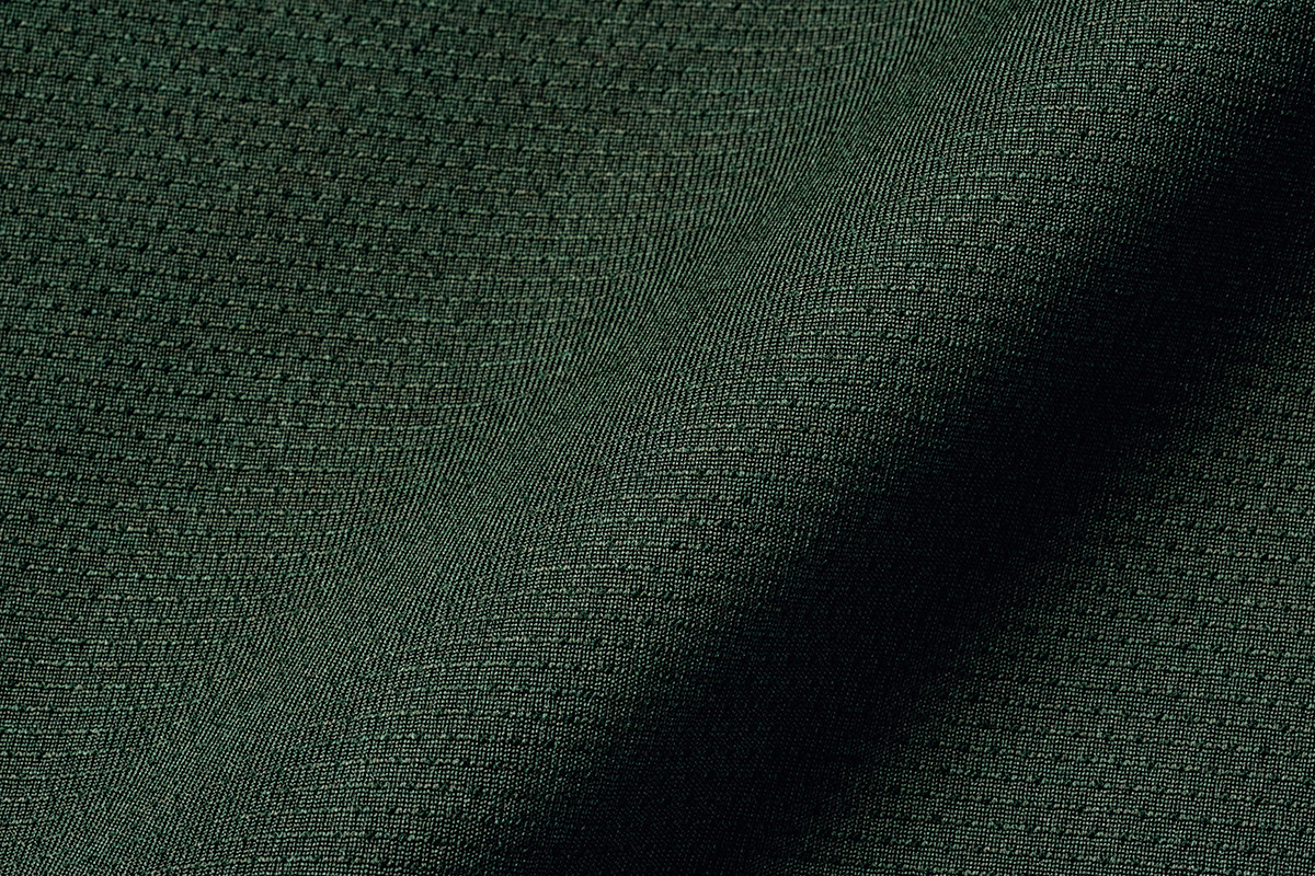 ▲表地、裏地ともに速乾性に優れるメッシュ生地。ソフトでストレッチ性も高く、快適な着心地。