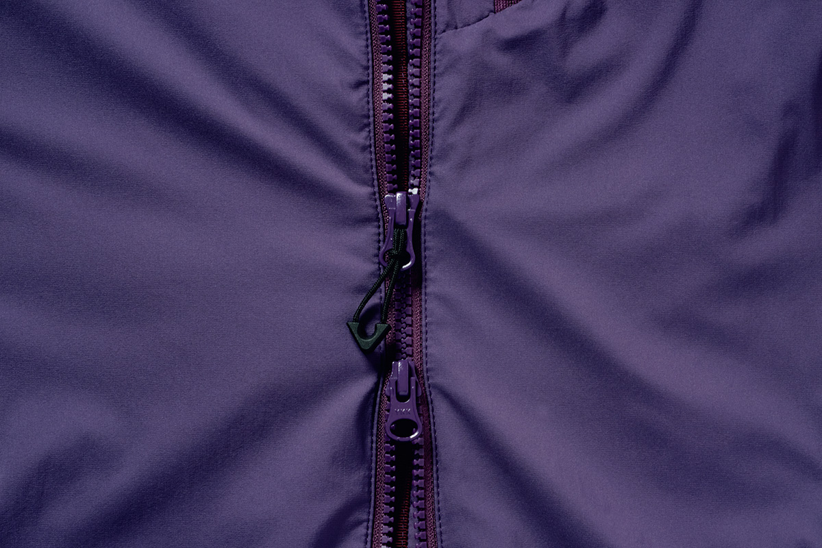 表地にブリーズバリヤー、裏地にスルーウォームを使用するジャケット。超撥水の生地に加え撥水糸で縫製したブリーズバリヤーは通気性を備えつつも小雨程度はものともしない。加えて、暖かいのに蒸れにくい。一度着ると手放せなくなる動的保温着の傑作。