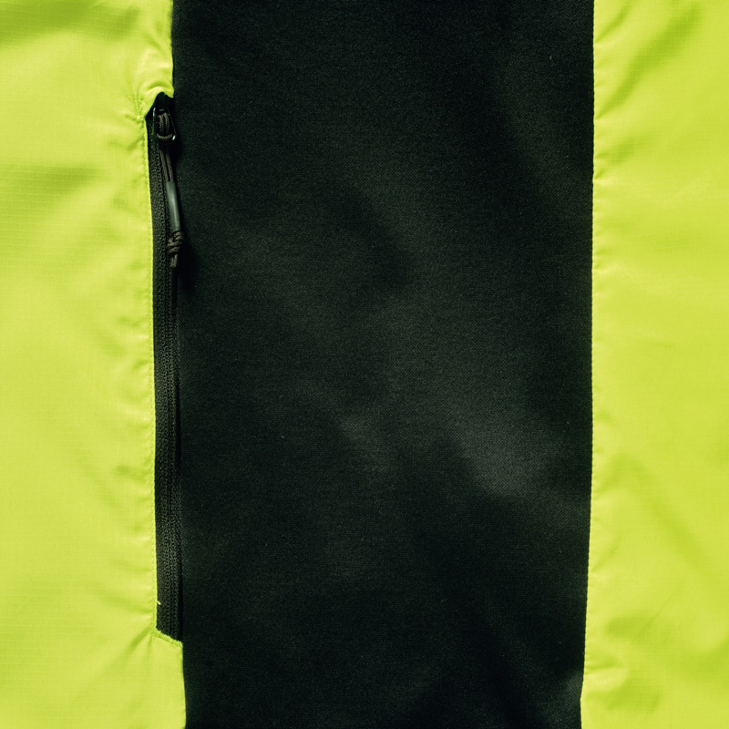 ▲両サイドはストレッチフリースのパネルを配置。運動性を高めながら、余分な熱を排出する。
