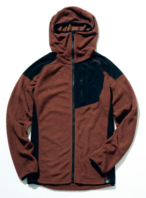 デッドエアを蓄えるかさ高な起毛と通気性に優れるメッシュがひとつになった独自素材スルーウォームを使用。伸縮性を補うために肩と脇にストレッチパネルを配したハイブリッドのほかに、フーディ、クルー、ベストと、ネックゲイター、アームカバーがある。