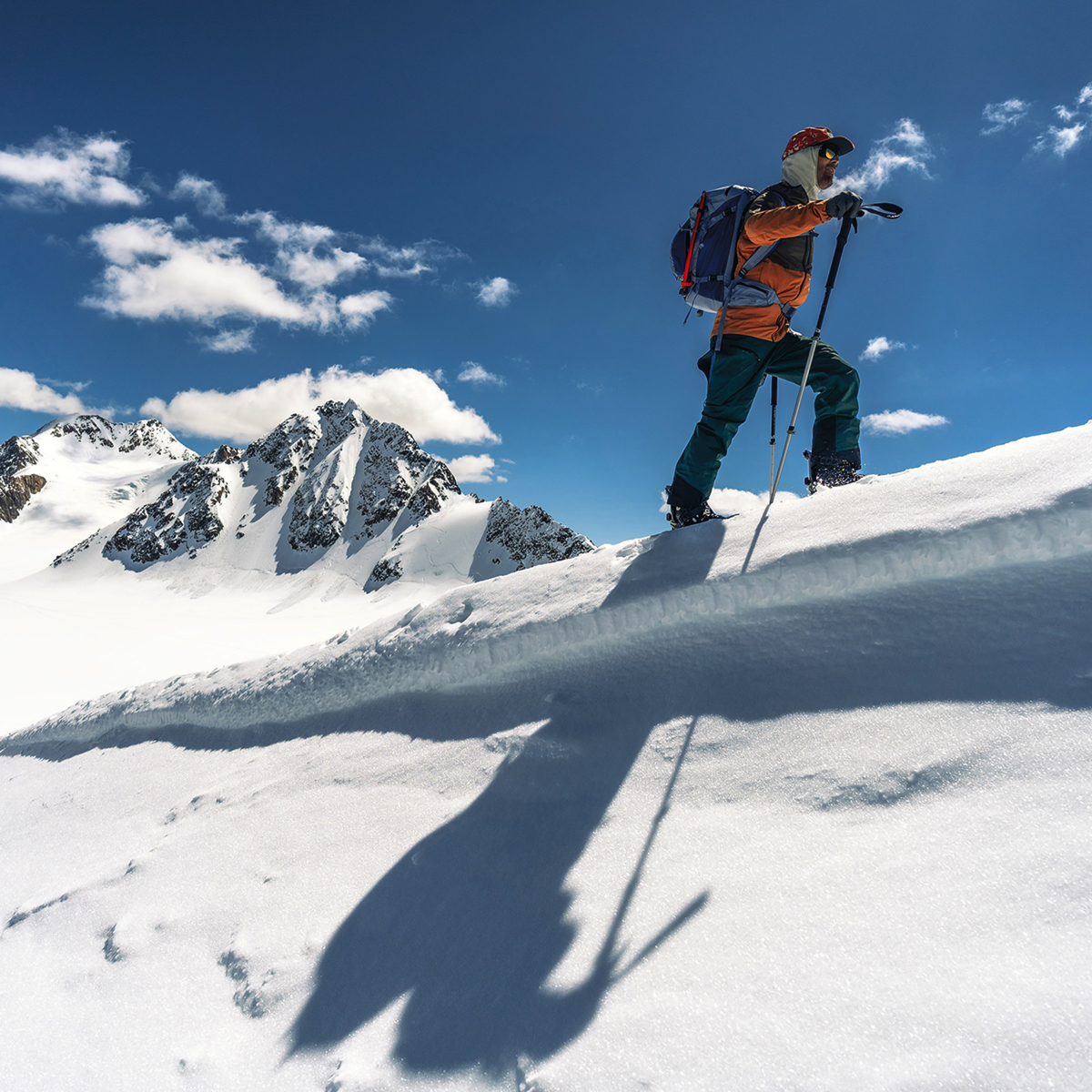 「パウスレイヤーフリーライドキット」は登って、滑って、また登る。そんな終わりなきバックカントリースキーのリズムを支えるために生まれたスノーシリーズ。