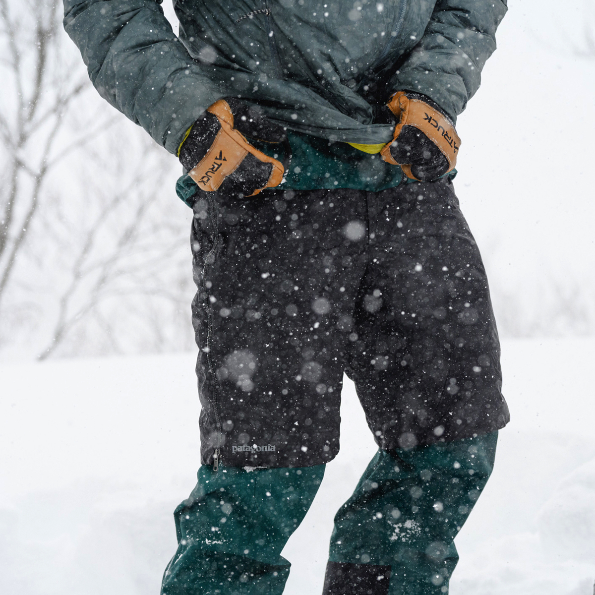 冷えた腰まわりを一瞬で温める、魔法のようなレイヤーが「DASライトショーツ」と「DASライトスカート」だ。フルレングスサイドファスナー仕様で、ブーツやハーネスなどかさばるスノーパンツの上から引っかかることなく着脱できる。