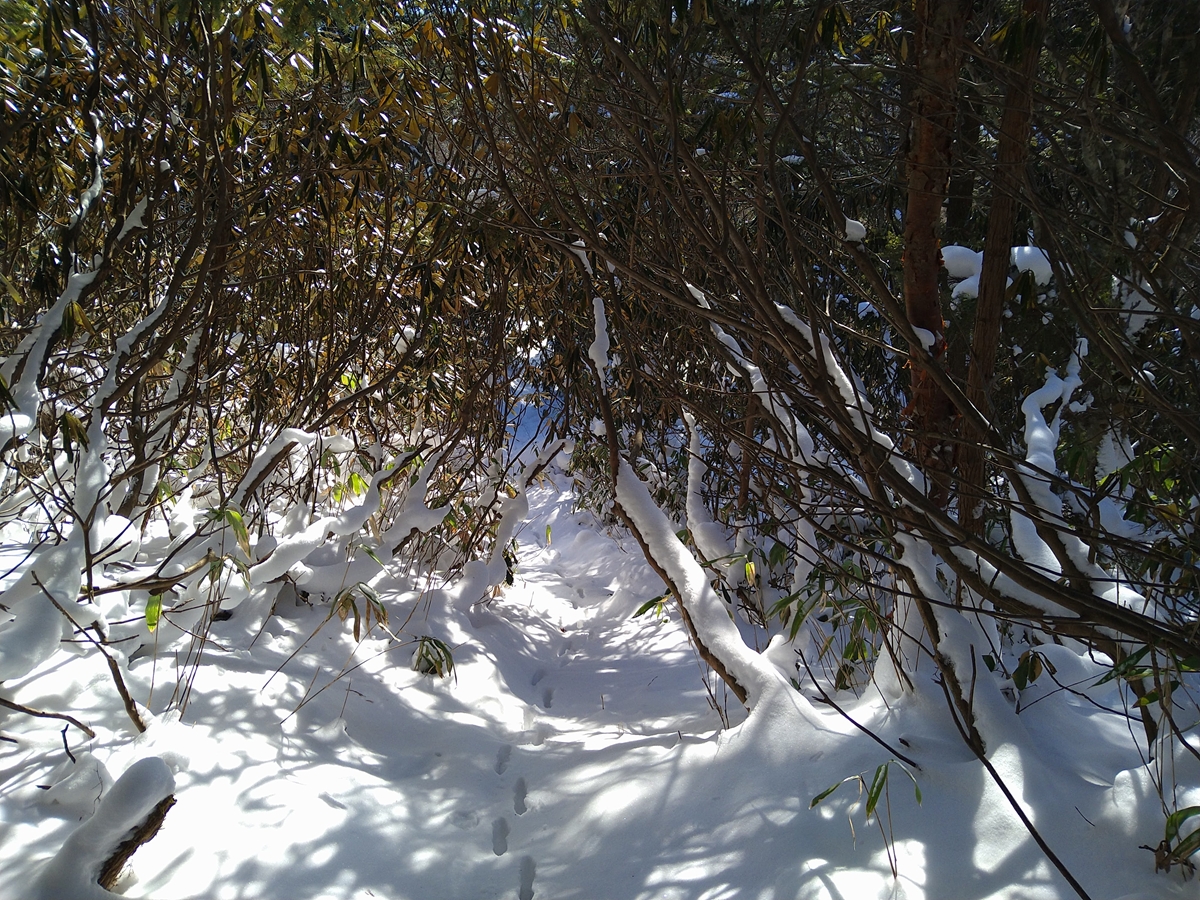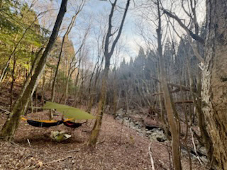 アワセ谷でハンモックを張り、沢音に包まれて迎える夜。冷たい空気と水の流れが、冬の山の静けさをやさしく際立たせます。夜明けとともに北谷登山口へ向かい、茶屋場を抜けて国観峠へ。霧氷が陽を受けて輝き、遠く阿蘇や九重の峰々が浮かぶ風景は、言葉にできないほど静かで澄んだ空気が満ちています。下山は風穴を経て北谷へ。王道ルートですが山の経験が増えるほど、祖母山(そぼさん)の魅力がわかってきます。ゆっくりと歩けば、祖母の懐に抱かれているような気持ちになります。