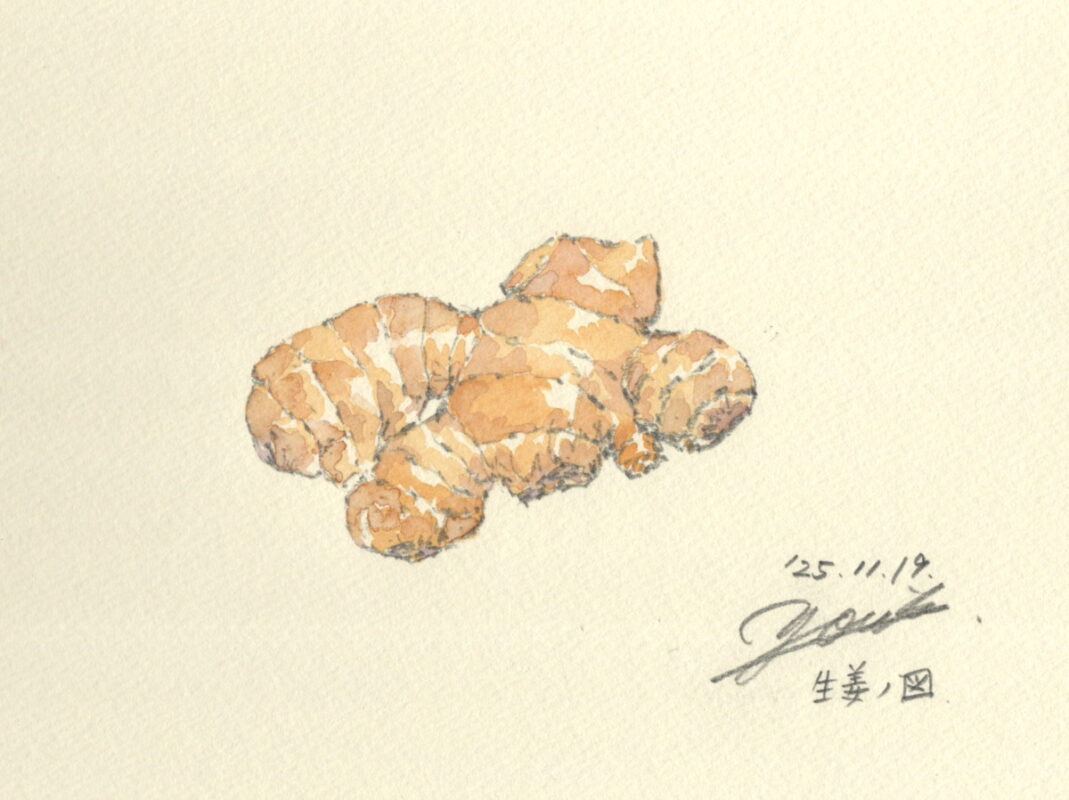 生姜の絵を描いた。なぜ生姜の絵を描いたかといえば、ジンジャーシロップを作ったからだ。なぜジンジャーシロップを作ったのかといえば、ジンジャーエールが大好きだから、というわけではない。