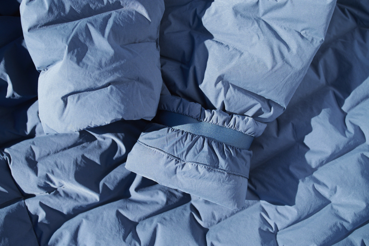 ストレッチダウンフーディは、全体の保温性に加え、細部にも余念がありません。フード・袖口・裾の三つの部位には、冷気の侵入を抑えるための工夫が施されています。