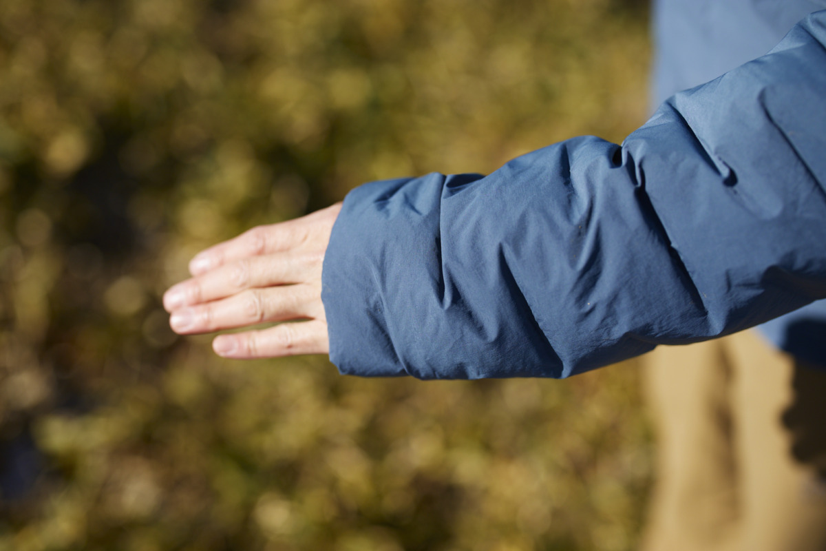 袖口には内側に伸縮性のバインディングを配しており、手首にしっかりフィットし、外気をしっかりブロック。