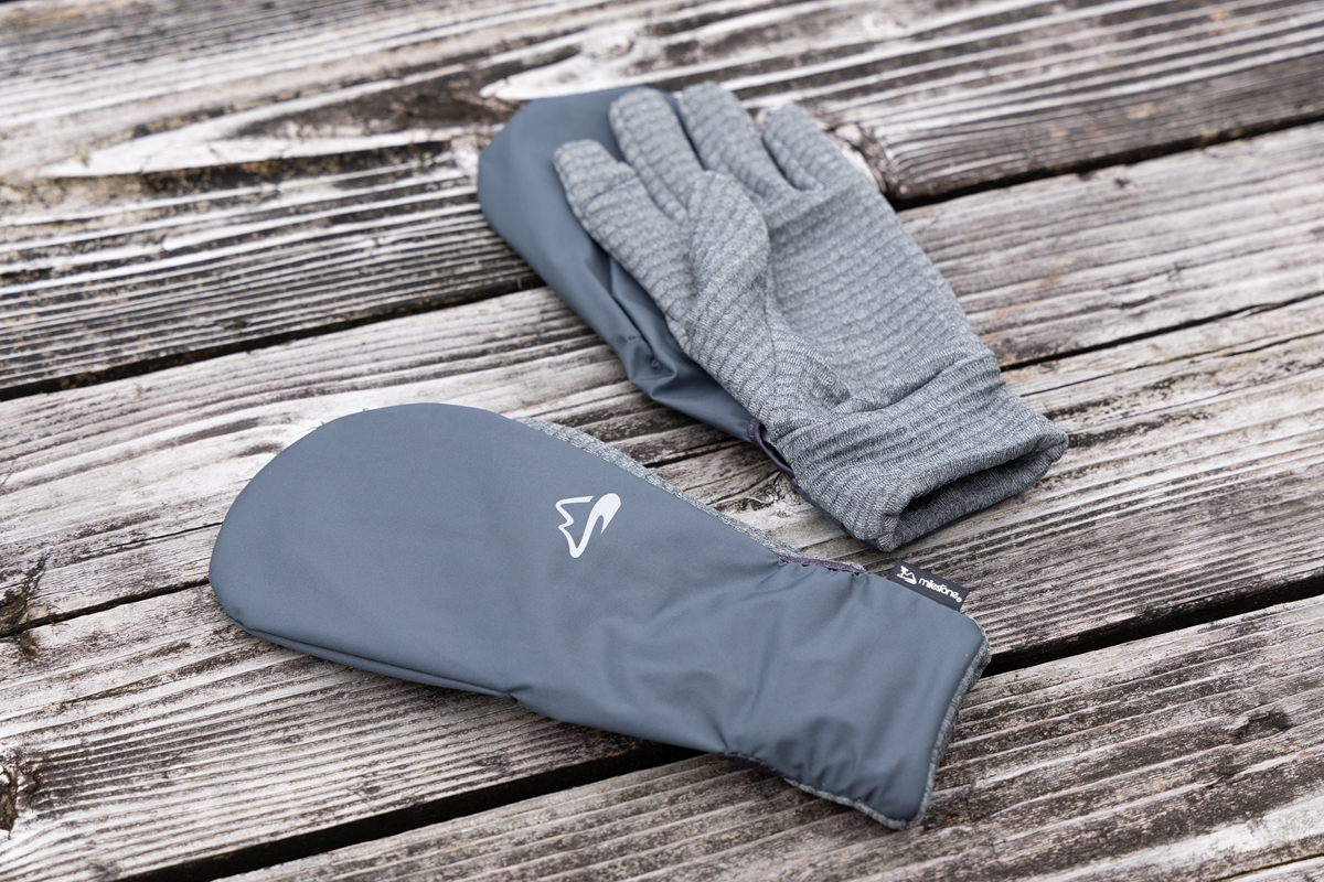 薄手保温グローブ+撥水ミトンを組み合わせたハイブリッドモデルを、マイルストーンらしい実用性を重視してモデファイ。