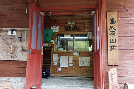 小屋の正面が受付。スタッフの都合や時間によっては空いていないこともあるので、注意したい。なお、高天原温泉の料金はここで支払う必要はない。