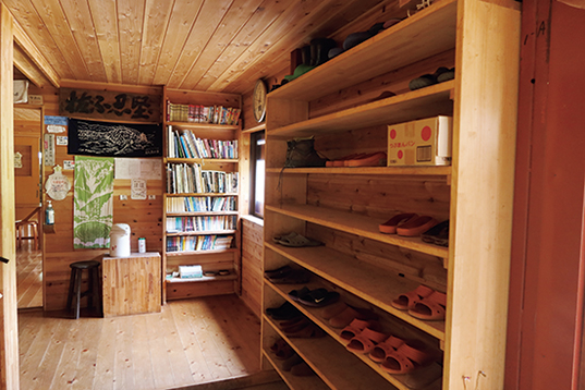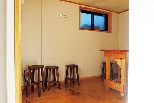 小屋の洗面所の近くには談話室。小さなスペースだが、とてもきれいだ。扉で仕切れる更衣室も併設され、女性でも安心。大部屋で無理に着替える必要はない。