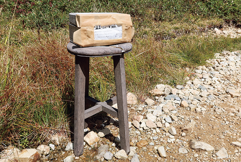 高天原山荘の前にある料金箱。入浴料は¥300。