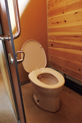 土壌に生息する微生物を利用しているというバイオトイレ。感心するほど、きれいに管理されている。
