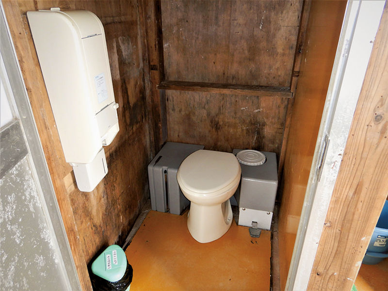 こちらは宿泊者専用の簡易水洗トイレ。通過者用のトイレは別に和式の汲み取り式トイレが設置されている。利用料は100円。どちらも屋外の別棟にある。