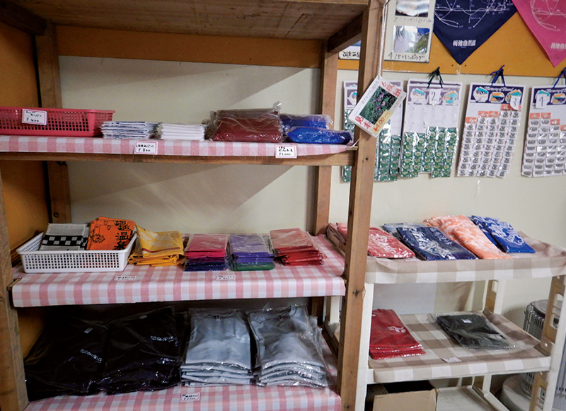 食堂内に併設された売店にはオリジナルグッズがずらりと並ぶ。