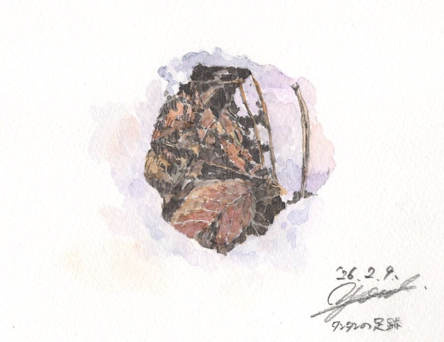 昼をすぎると雪は見る見る溶け始め、足跡の窪みには落ち葉が顔を出した。足型もすっかり朧げになり、昨夜のできごとが夢のように思えてくる。太陽の暖かさで消えてゆく足跡を眺めながら、猛スピードで変化する人の世とは別の時間がすぐ隣にあるという当たり前のことに、どこか心の安らぎを覚えるのだった。