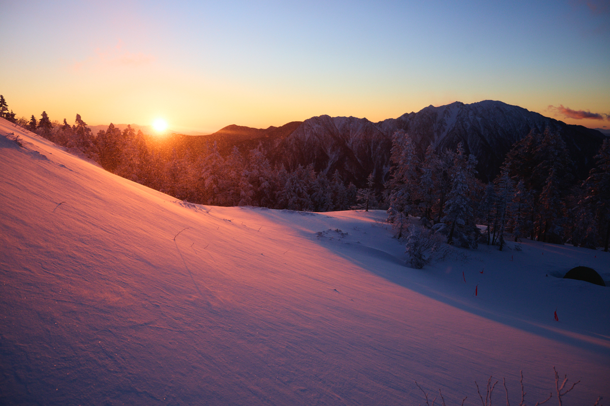 山小屋が静かに眠り、稜線が白に閉ざされる冬。
