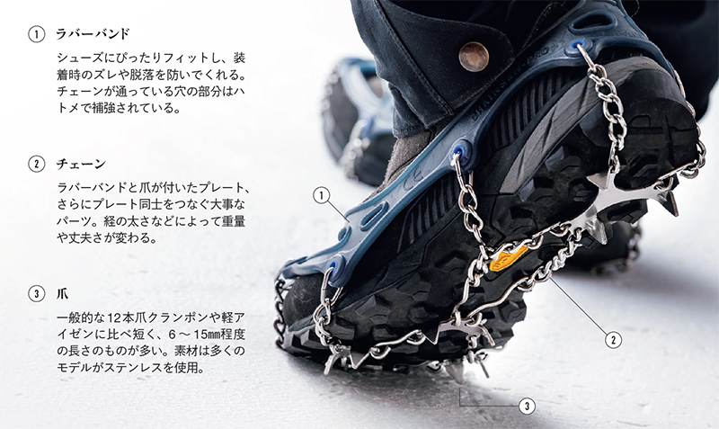 “適所”で活躍する雪山登山のお助けアイテム。「チェーンスパイク解体新書」|PEAKS 2026年1月号