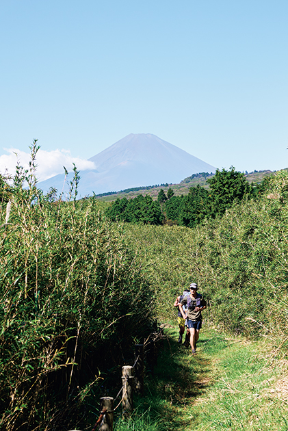 箱根外輪山の登山道は、ところどころに階段があるものの、比較的走りやすいトレイルが続いていた。下りになると気分の高揚に合わせて、足取りも弾むように速くなる。しかし、登りになると動きが一変。途端に歩みが遅くなり、テンションもガクンと下がる。普段の登山より背負っている荷物が軽いとはいえ、トレランスタイルでの登りはキツイ。少しでも速く歩こうとすればなおさらで、わずかな傾斜でも胸がはち切れるかと思うほどの苦しさに襲われる。
