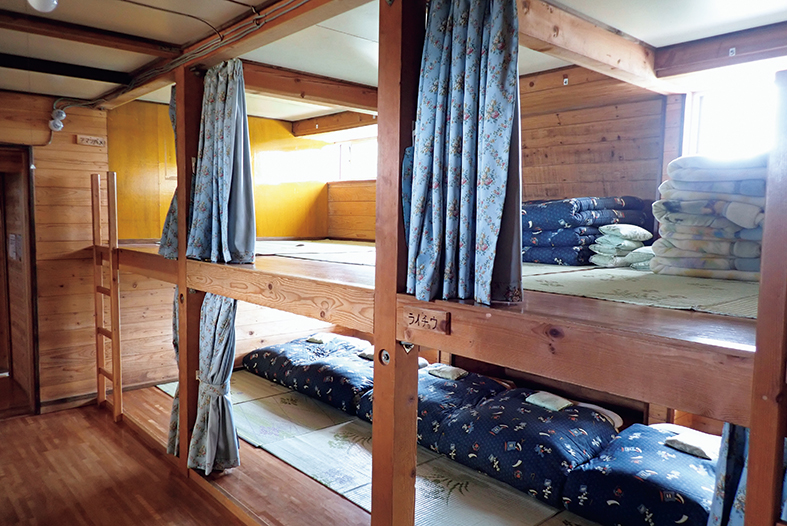 2階には、畳敷きの部屋が6部屋ある。個室はないものの、ひとりひとりのスペースの確保は十分だ。布団はふかふかで心地よく、あたたかく眠れる。