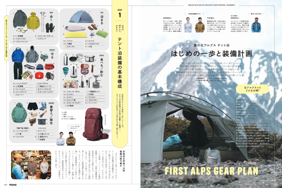 装備の全体像がつかめれば、憧れの北アルプスはぐっと現実に!この夏、テント泊デビューを目指す人は必見です。