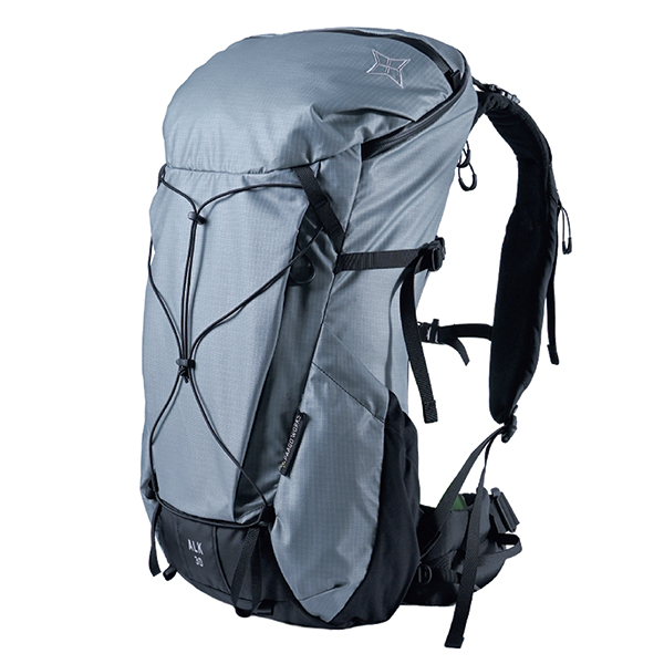 泊まり山行に対応する30L。大きく開くバックサイドオープン仕様でパッキングしやすく、バックカントリーでも使い勝手がよい。アルミフレーム内蔵で荷重を分散し、安定して背負える。