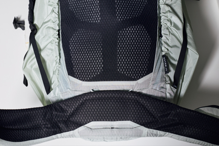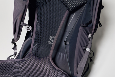 腰部の確実なフィット感を得られるAdvancedairCHASSISにより、究極のサポート性、快適性、安定性を実装。背面は通気性に加えて、肩甲骨付近を中心に荷重が背中全体に分散されるトランポリンパネルが心地いい。テント泊装備を軽快に背負えるパックだ。