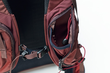 大小さまざまなポケットを装備し、パッキングがしやすい。とくにショルダーハーネスのポケットは、スマホやボトルの出し入れのよさが際立つ。背面長調節ができ、腰荷重に耐えるしっかりとしたヒップベルトはフィット感良好。価格以上の高機能パック。