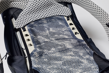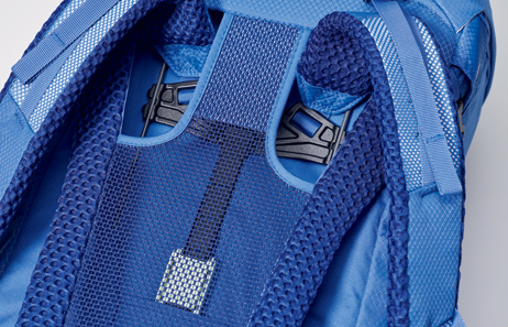 暑さに悩まされることが続いている夏山で、背中だけでなく腰まで大きく空間を設けたメッシュパネルが涼しさを提供。5段階の背面長調節機能は固定にクリック感がある。トップスタビライザーも2段階調節でき、一体感のある背負い心地でサポートしてくれる。