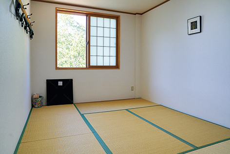 客室は2階に15室、1階に2室ある。掃除の行き届いた畳張りの部屋は明るい窓もあり、とてもきれいだ。部屋にはコンセントもある。