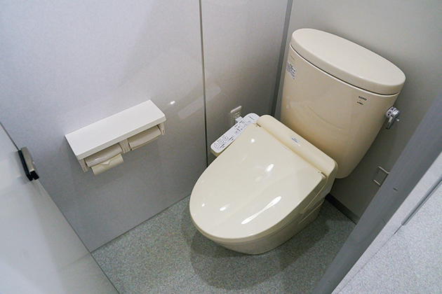 ウォシュレット完備の水洗トイレはとてもきれいでうれしい。男性用の小便器もセンサー付きで清潔感が保たれている。