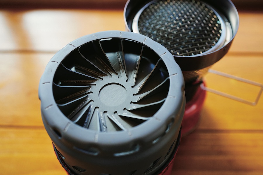 ポットの底部に備わるヒートエクスチェンジャーは、ウィンドバーナーが驚くほど高い燃焼効率を発揮する仕組みのひとつ。