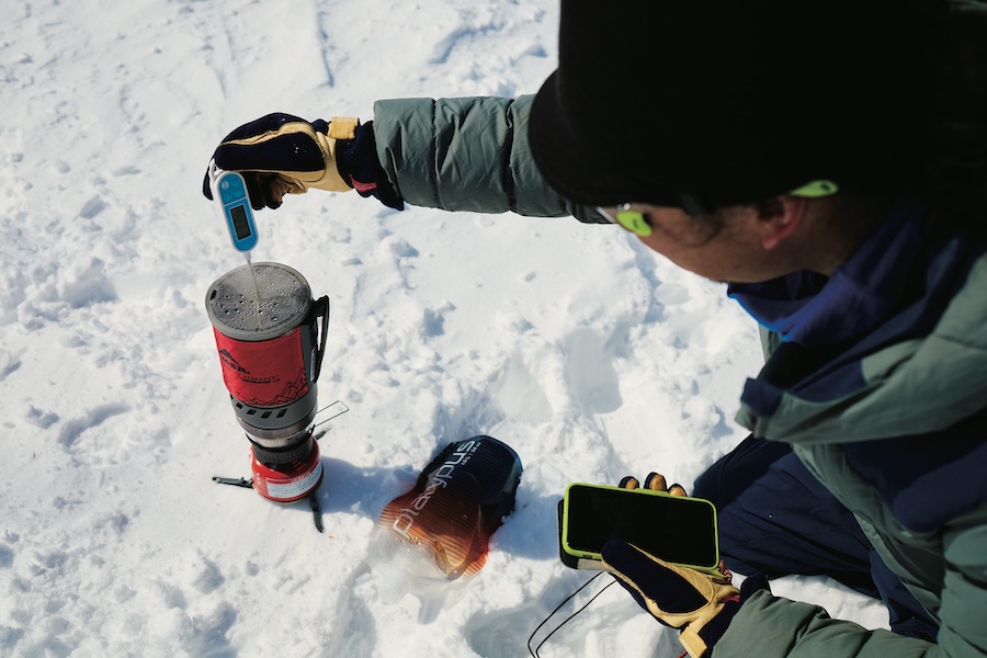 この10秒の違いは、水筒から注いだばかりの水の温度が影響してまったのだろう。当初12℃だった水が雪の上で冷やされて、最後には8℃まで低下してしまっていたのだ。