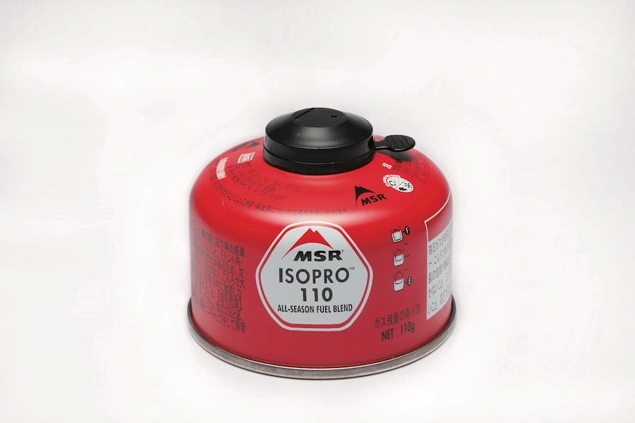 イソブタンガス80%に、プロパンガス20%をブレンドすることで低温下でも安定した燃焼を促進させる専用燃料缶。容量110gの小型缶と、容量227gの中型缶が揃う。