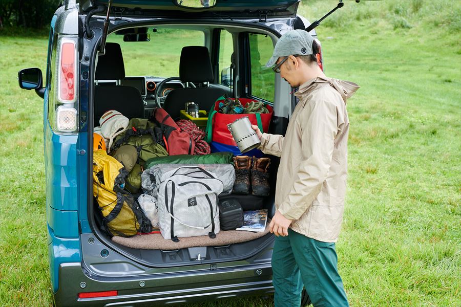 そう語るのは、アウトドアセレクトショップを営む戸谷悠さん。いまは一台の車でファミリーキャンプもソロハイクもこなしているそうだが、遊びに特化した車を持ちたいという願望は強い。今回はコンパクトハイトワゴンモデルをベースに、アウトドアで使いやすいようにチューンナップされたスペーシアギアを試してもらった。