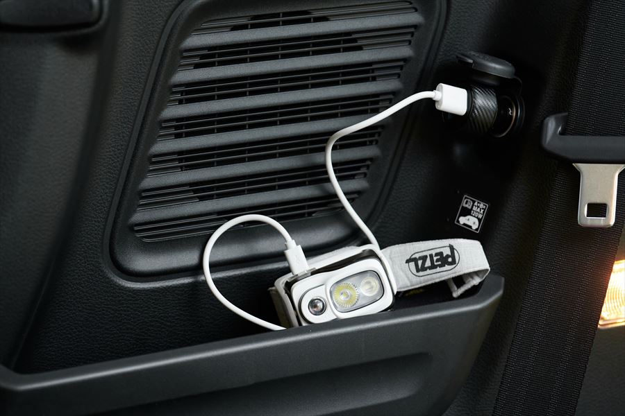 後部にもシガーソケットが搭載されており、走行中に充電が可能。スマートフォンはもちろん、ヘッドランプなどアウトドアギアの充電にも使えて便利。