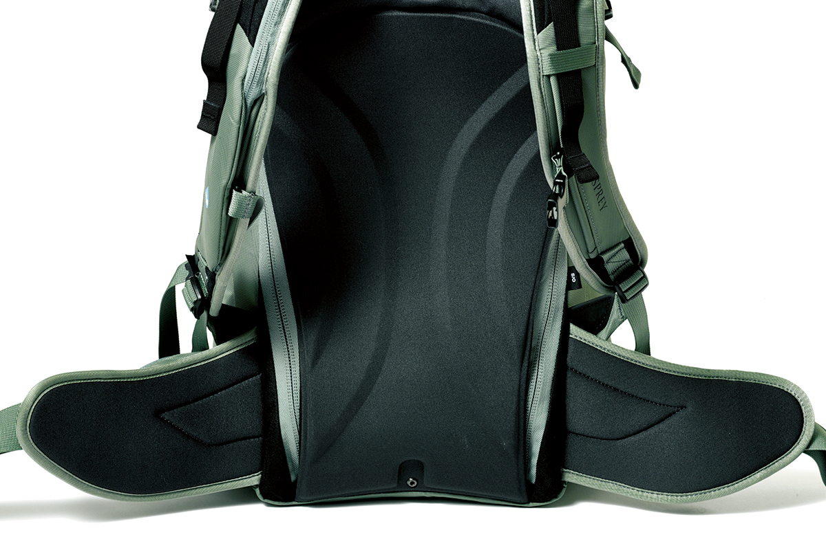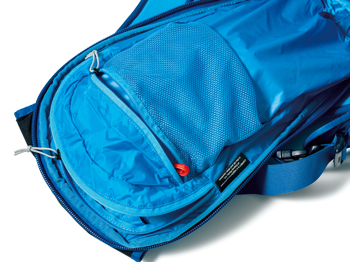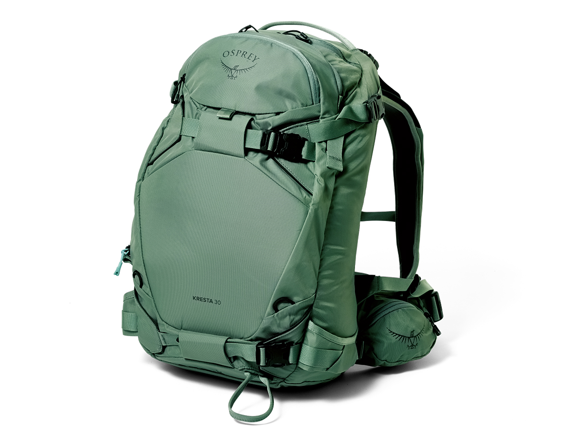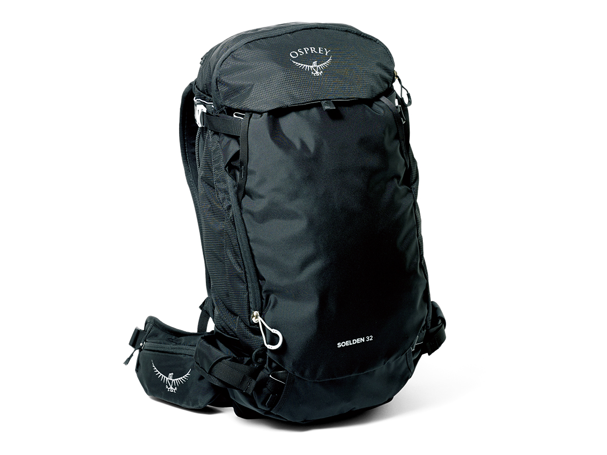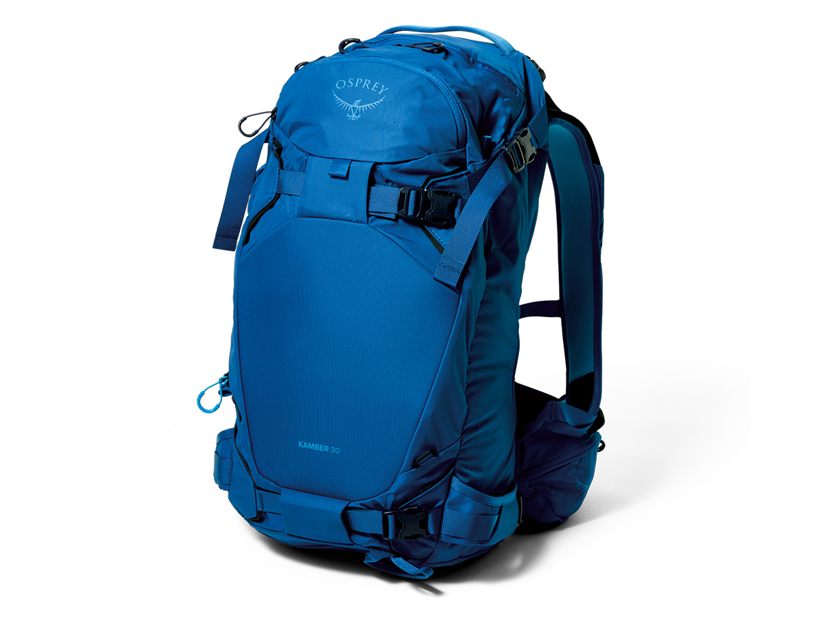 2021年秋、オスプレーの全製品のメインボディがブルーサイン認証の生地になった。製品の半数以上はすでにリサイクル素材を使用。北米におけるバックパックのトップブランドは、環境配慮でも最先端を行く。ここで紹介するのはバックカントリースキー・スノーボード用モデル。もちろん雪山登山にも対応する。