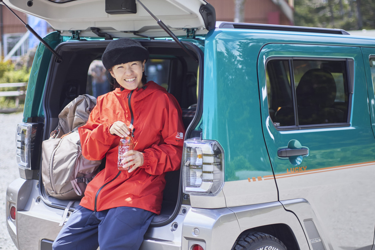 山小屋泊用の荷物も、温泉に立ち寄るときのお風呂セットも、かわいらしいシートの上に並べれば、それだけで旅の高揚感が増していく。荷物を積む行為すら楽しみに変えてくれるのが、この一台の強みだ。