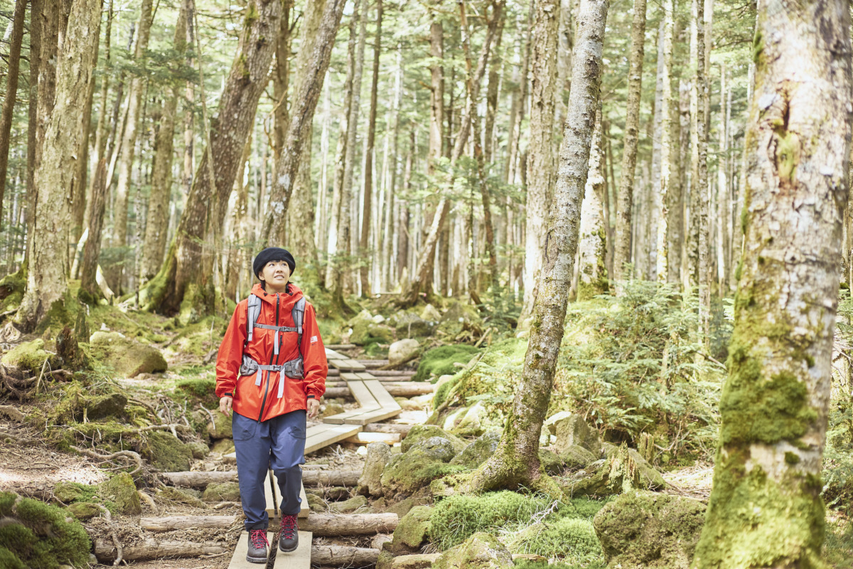 旅をしたのは、八ヶ岳のふもとに暮らす絵描きの伊藤佳美さん。彼女にとっても、森へ通うことは自分らしい日々の営みで、線と色の源になる。苔むす森を抜けて白駒の池へ。しっとりとした空気と柔らかな光に包まれる。オコジョとのうれしい出合いも。